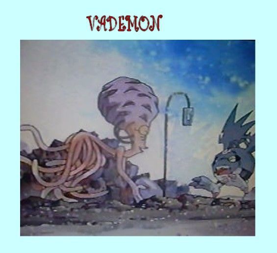 Est l'un des personnages ficitifs de l'univers Digimon. Il apparaît dans l'épisode 24 de Digimon Adventure. C'est un Digimon extra-terrestre, de niveau ultime. Il est intelligent, mais n'ayant pas de place dans son vaste cerveau pour la conscience, il veut donc une surabondance de la connaissance pour lui seul et la stupidité de tous ceux qu'il rencontre. Il attaque l'adversaire avec sa puissance spatiale. Vademon apparaît dans l'épisode 24 de Digimon Adventure lorsque Izzy Izzumi et son Digimon Tentomon tombent dans sa poche dimensionnelle. Là, il réussit à convaincre Izzy à renoncer à sa curiosité, que Pabumon l'aidera à récupérer. Dans le même temps, Demidevimon voulait que Vademon lui remette le scanner de la Connaissance d'Izzy, mais une dispute éclate entre les deux Digimon. Cela a permis à Pabumon de se digivolver en Motimon, puis en Tentomon, puis en Kabuterimon, et enfin en MegaKabuterimon pour vaincre Vademon. L'attaque fatale de MegaKabuterimon détruit aussi la poche dimensionnelle de Vademon et permet au duo Digimon/digisauveur de s'enfuir. Ses attaques sont Laser Cosmique et Rayon extra-terrestre .